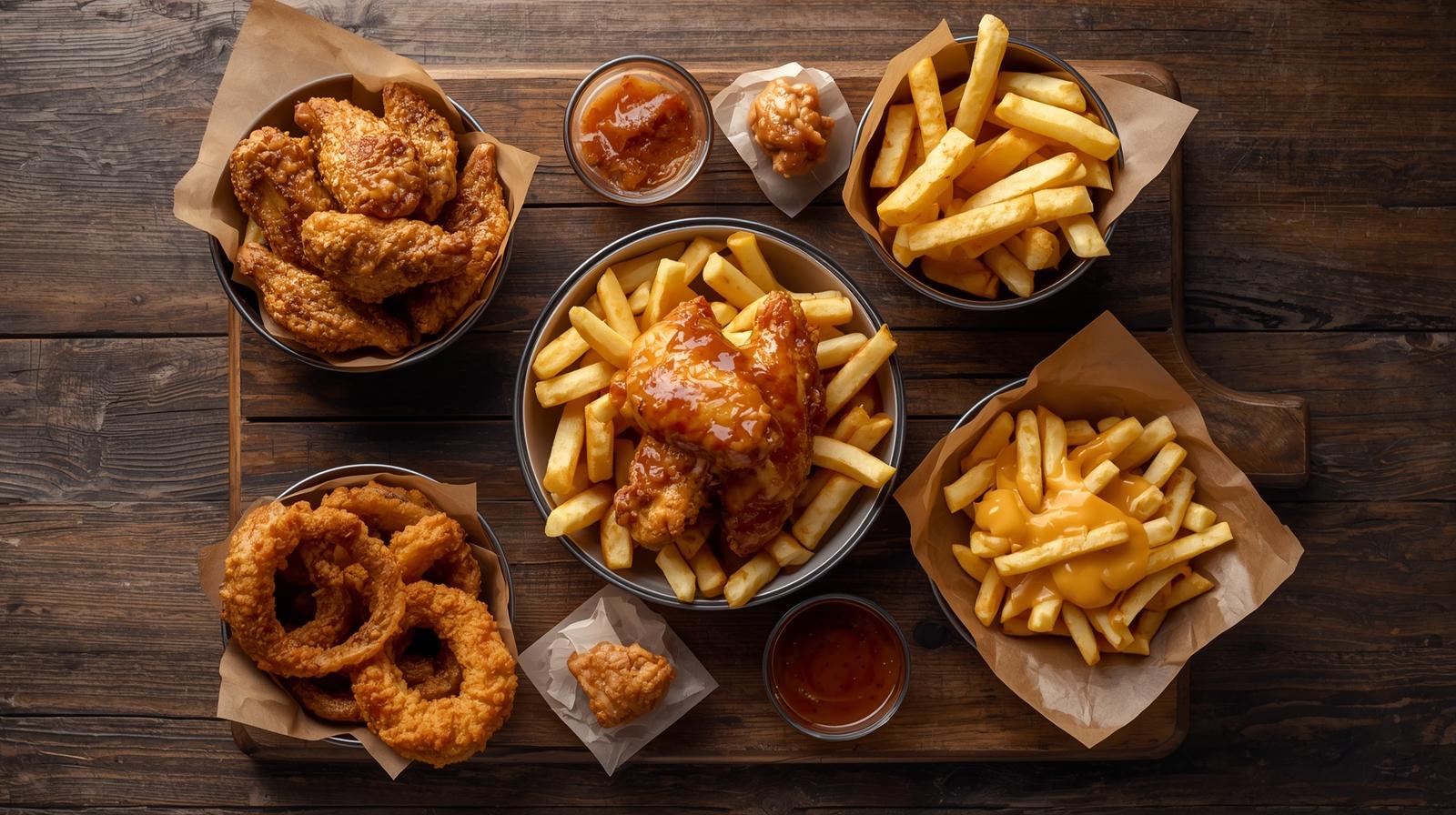 Crispy potato skins loaded with melted cheese, crispy bacon bits, and served with cool sour cream. A perfect appetizer or side dish to complement your wings.